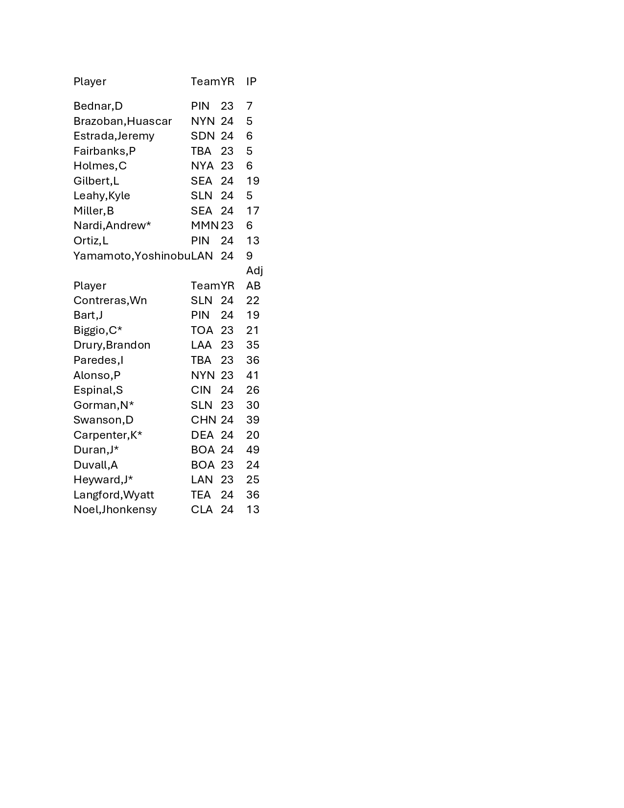 JBW Cardinals Post Season Roster