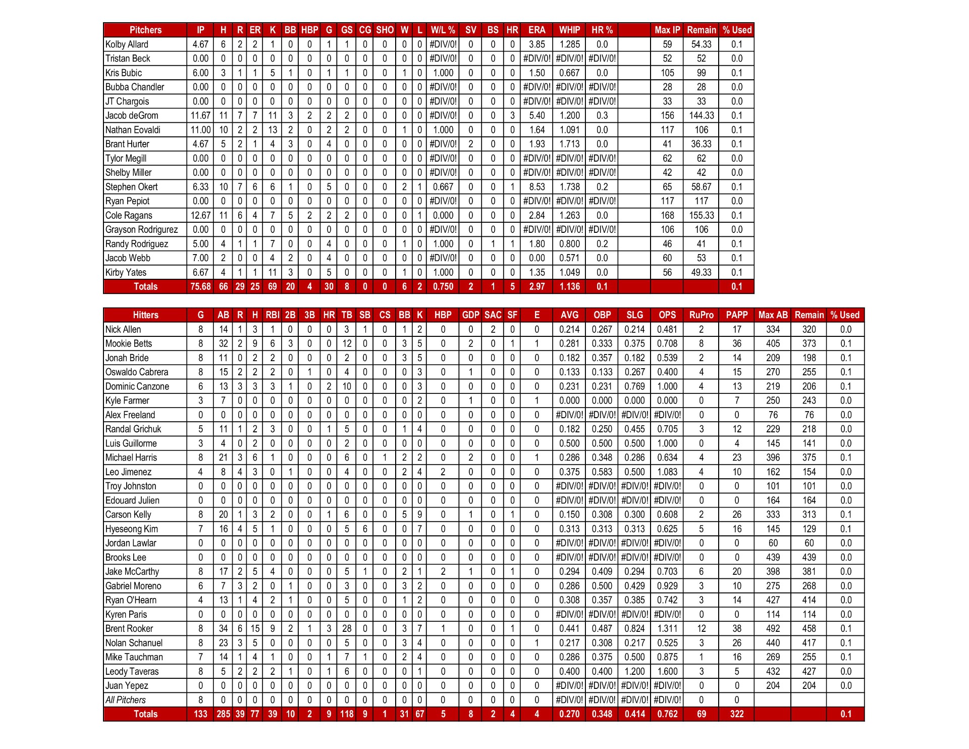 2026 JBW Nationals Statistics