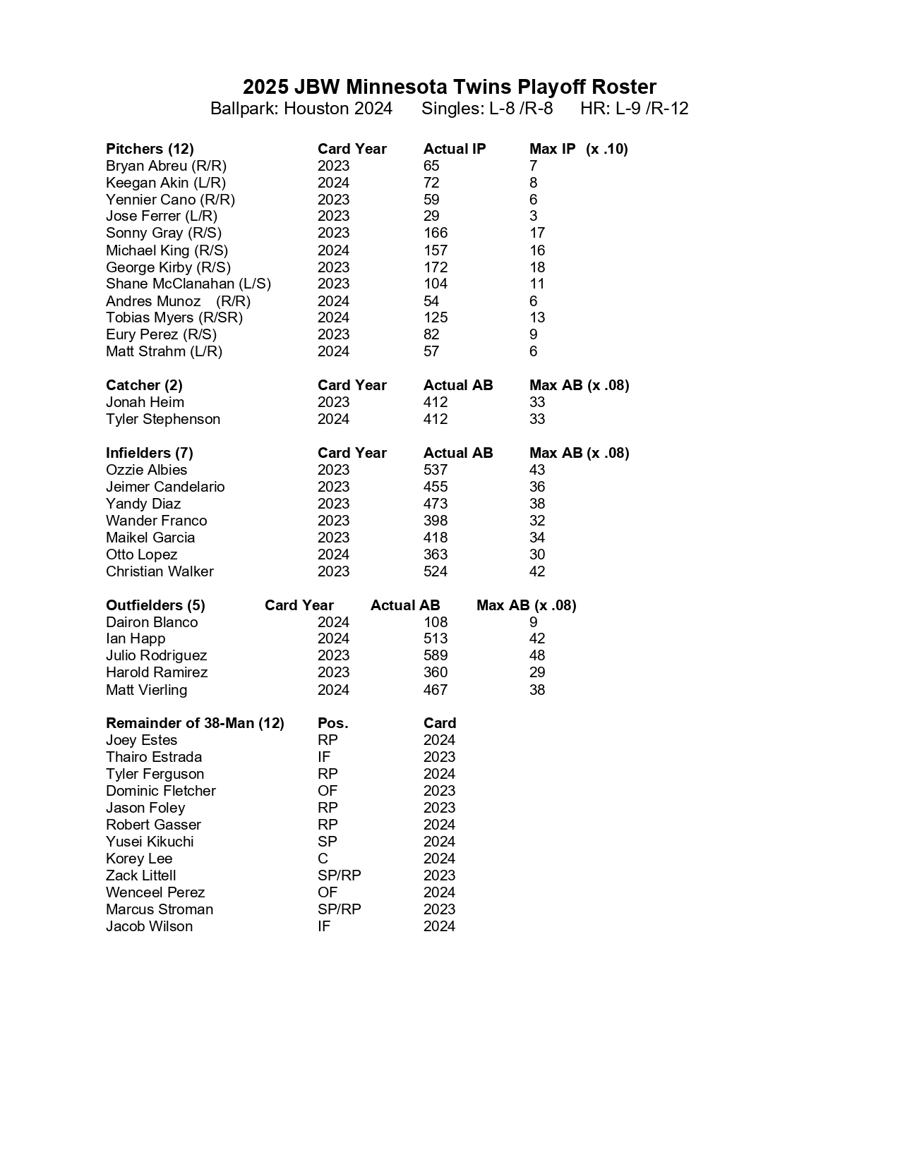 2025 JBW Twins Post Season Roster