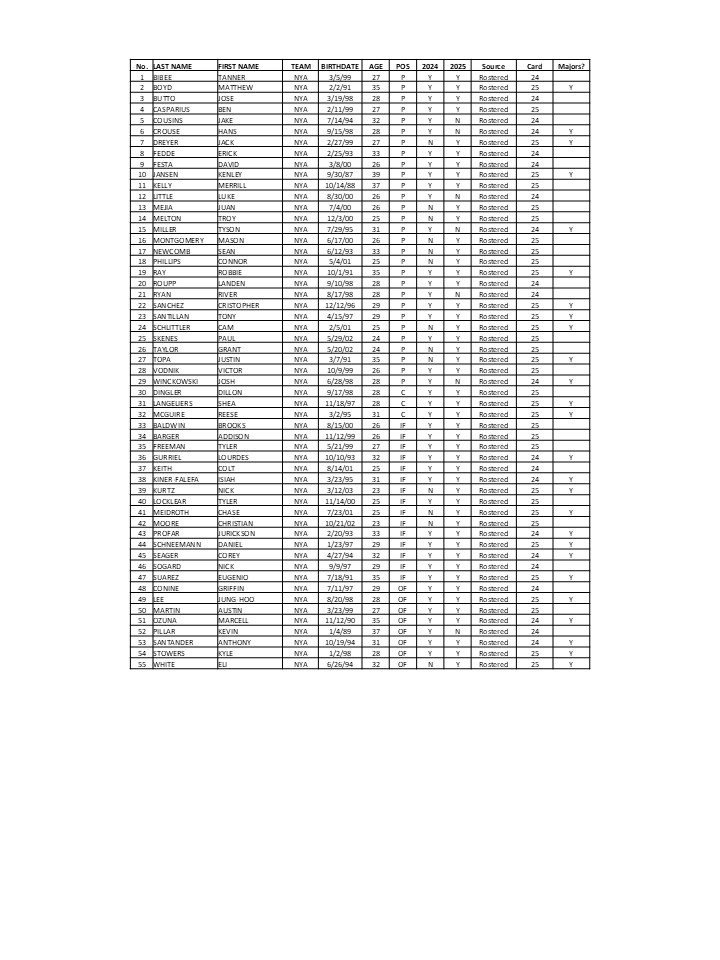 JBW Yankees Roster